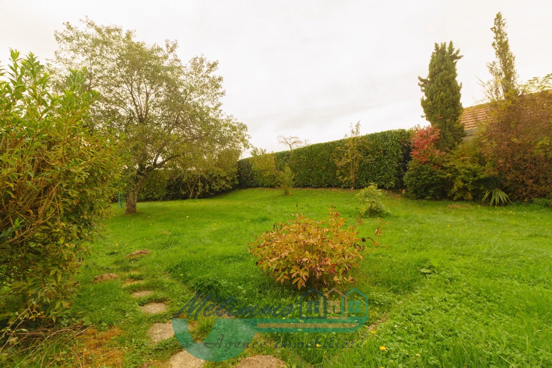 Le rez-de-chaussée comprend également une salle à manger, une cuisine aménagée et équipée avec accès à une seconde terrasse, ainsi qu'une salle d'eau avec WC.