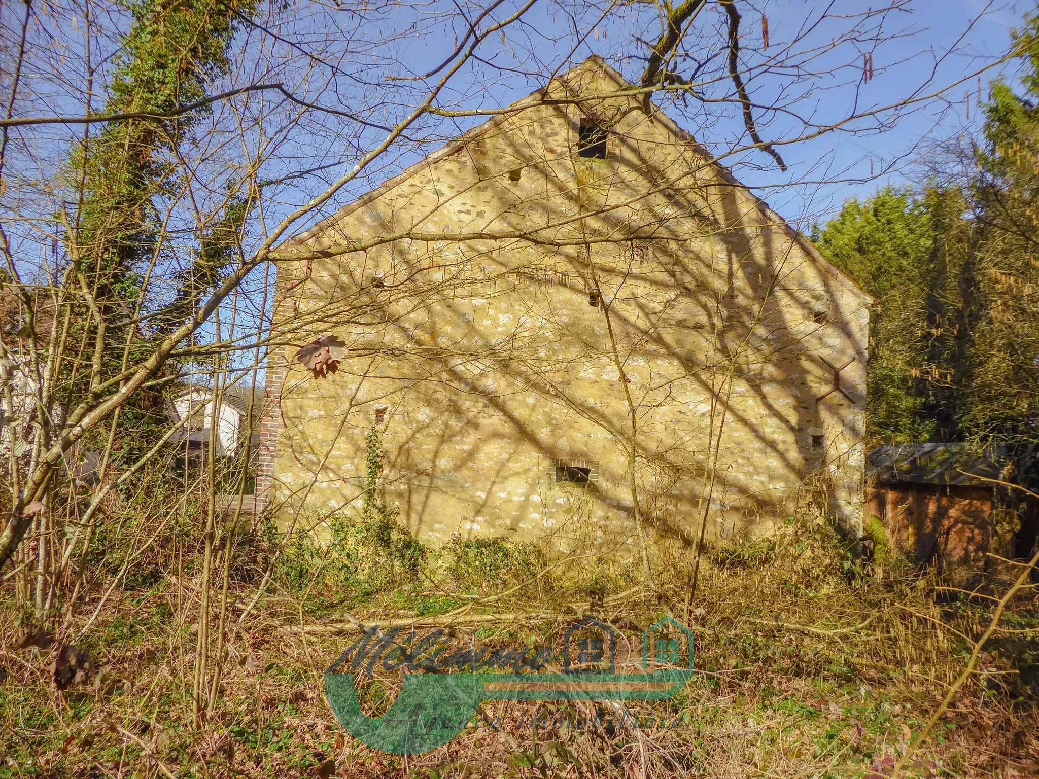 La grange séduit par ses beaux volumes, sa belle hauteur sous plafond et ses ouvertures permettant une belle luminosité naturelle. Sur un terrain verdoyant, au calme, entouré d’arbres et de nature.